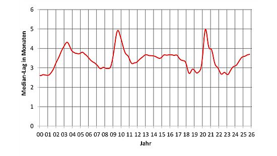 Median-Lag der Anpassung, Januar 2000  - Oktober 2025